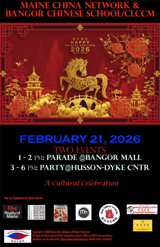 As always, we will have a parade, hand out red envelopes to children, and hold a performance. Then we move to the Dyke Family Center in Husson University, with more performance and delicious Chinese dinner. All are welcome!